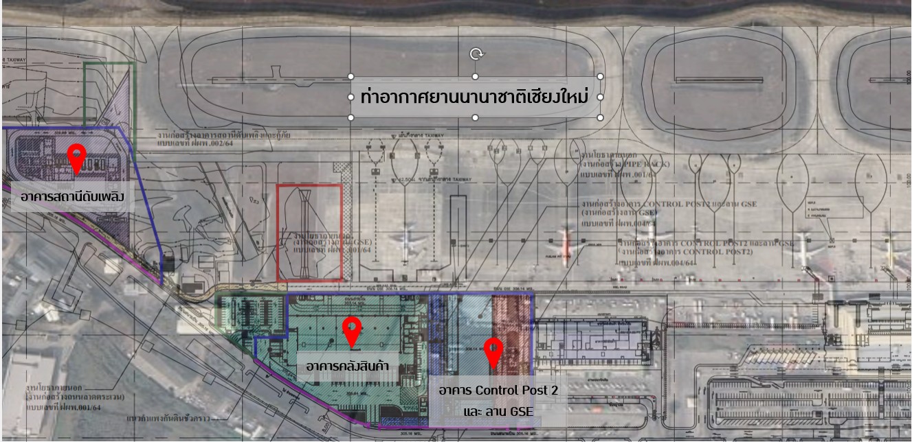 – ก่อสร้างอาคารสถานีดับเพลิง อาคาร CONTROL POST 2 และ ลาน GSE พร้อมถนนภายในระบบประกอบอาคารต่างๆ และ